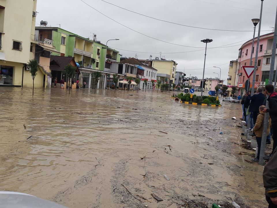 Kanë mjaftuar vetëm disa minuta rrebesh shiu dhe rruga kryesore e qytetit të Laçit ngjan si një lumë në mes të qytetit.