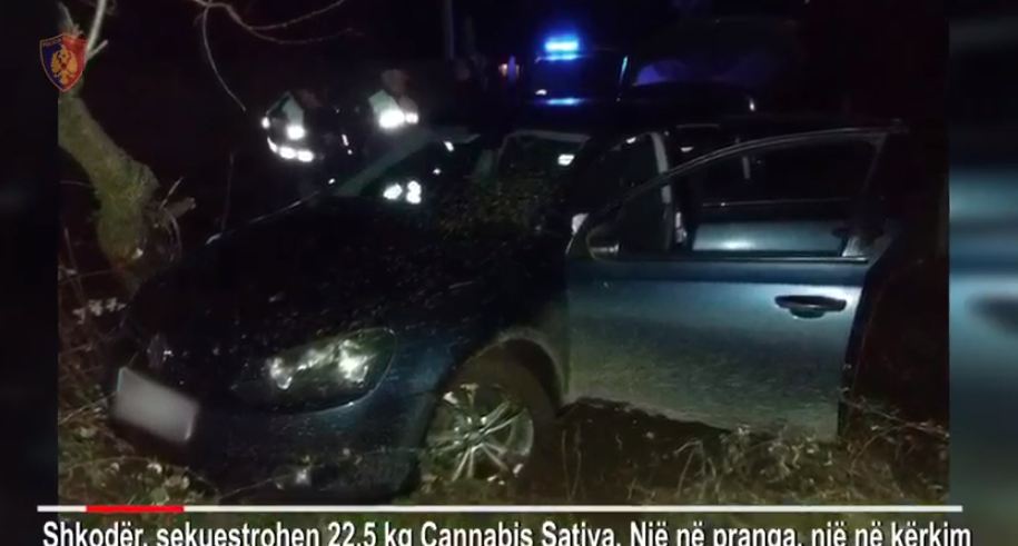 Policia e Shkodrës ka arrestuar 32 vjeçarin Bardhok Qershia dhe i ka sekuestruar atij 22.5 kg lëndë narkotike kanabis sativa. Ai është ndaluar vetëm pasi ka dalë nga rruga me automjetin e tij, sepse fillimisht ka hezituar t’i bindet urdhërit të togave të zeza.