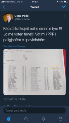 Për këtë vjedhje e falsifikim vote ka reaguar edhe deputeti i PD-së Genc Pollo, i cili figuron si “votues” i Prokurorit të Përgjithshëm të përkohshëm.