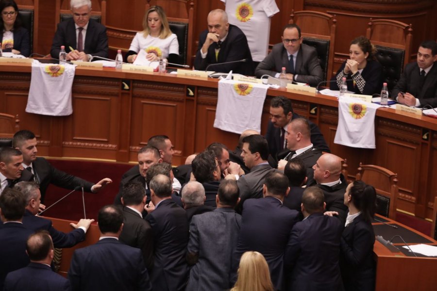 Seanca plenare është përfëshirë sërish nga tensionet, pikërisht në momentin kur Gramoz Ruçi vendosi të nisë me shqyrtimin e rendit të ditës. Deputetët e opozitës iu drejtuan të gjithë foltores së Kuvendit, duke e bllokuar atë dhe duke mos lënë asnjeri të flasë. Aty janë konfrontuar sërish me punonjësit e Gardës së republikës.