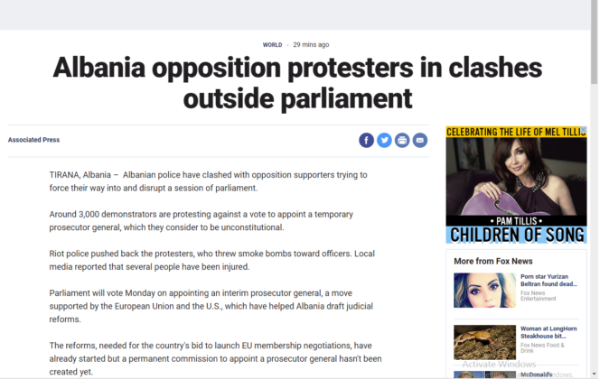 Agjencitë ndërkombëtare të lajmeve kanë raportuar situatën e tensionuar brenda dhe jashtë parlamentit në ditën e zgjedhjes së Prokurorit të përgjithshëm të përkohshëm. AFP i ka paraqitur zhvillimet në Shqipëri me anë të disa fotografive. Ndërsa “Associated Press” shkruan se në protestën e opozitës jashtë parlamentit morën pjesë rreth 3 mijë persona. Kjo agjenci thekson se disa prej tyre janë lënduar nga përleshjet me policinë.