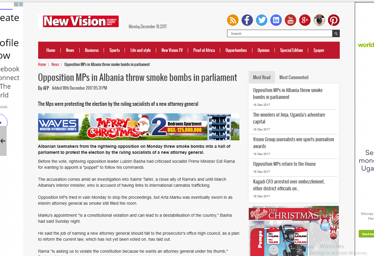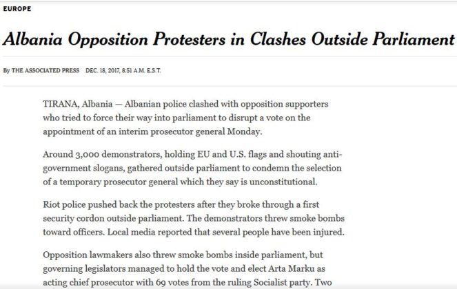 Ndërsa Rojters duke pasqyruar dhunën jashtë dhe brenda parlamentit, rithekson se kryetari i Partisë Demokratike, Lulzim Basha, bëri thirrje për protesta të reja në Janar. Ndërsa citon kryeministrin Rama i cili thekson se zgjedhja e kryeprokurorit ishte legjitime dhe kushtetuese si dhe është konfirmuar edhe nga ekipi i BE-së dhe Shteteve të Bashkuara që asistojnë në reformën në drejtësi.