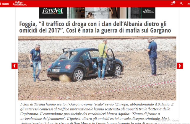 Katër viktimave të vrasjeve në San Marco dhe shtatë vrasjet e qarta mafioze në krahinën e Foggia tregojnë se shtrirja e trafikantëve në Foggia po bëhet edhe më e madhe. Marihuana mbi të gjitha, por edhe kokainë dhe heroinë, janë gjetur në Gargano për në Evropë. “Trafikimi i drogës me Shqipërinë ka krijuar një luftë të re mafioze”, tha kolonel Mark Aquilio, komandanti provincial i karabinierëve të Foggia, gjatë prezantimit të të dhënave për veprimtaritë e kontrollit territoriale në vitin që po përfundon. Një luftë e re mes klaneve po shtrihet në rajon. Çdo gjë ka kuptim, madje edhe pozicionin gjeografik në të cilin ata veprojnë: së pari në bregdet, pastaj në brendësi, shkruan ilfattoquotidiano.it. “Ajo që kemi vënë re është rritja e madhe dhe fuqizimi i organizatave kriminale të drogës, dhe fërkimet që lindin mes grupeve mafioze kanë lidhje me trafikun e drogës,” deklaron komandant Aquilio.