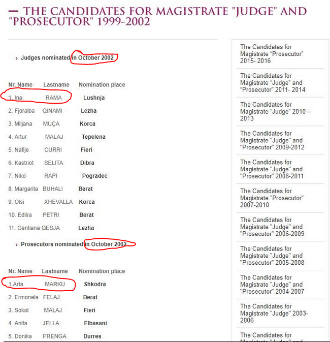 Por është harruar edhe një detaj tjetër. Në shkollën e magjistraturës të viteve 99-2002 ajo ka qenë shoqe klase me një tjetër prokurore të përgjithshme, Ina Ramën. Dokumenti më poshtë tregon se në atë brez kanë studiuar një numër i kufizuar juristësh ndër të cilët dy prej tyre kanë kapur edhe postin e Prokurores së Përgjithshme. Ne te njejten klase ka qene edhe deputetja aktuale e PS-se, Ermonela Felaj.