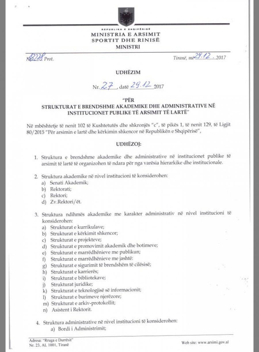 Ndrikull Nikolla konfirmon dështimin e ligjit për arsimin e lartë dhe me udhëzim antiligjor kthehet tek ligji i mëparshëm.