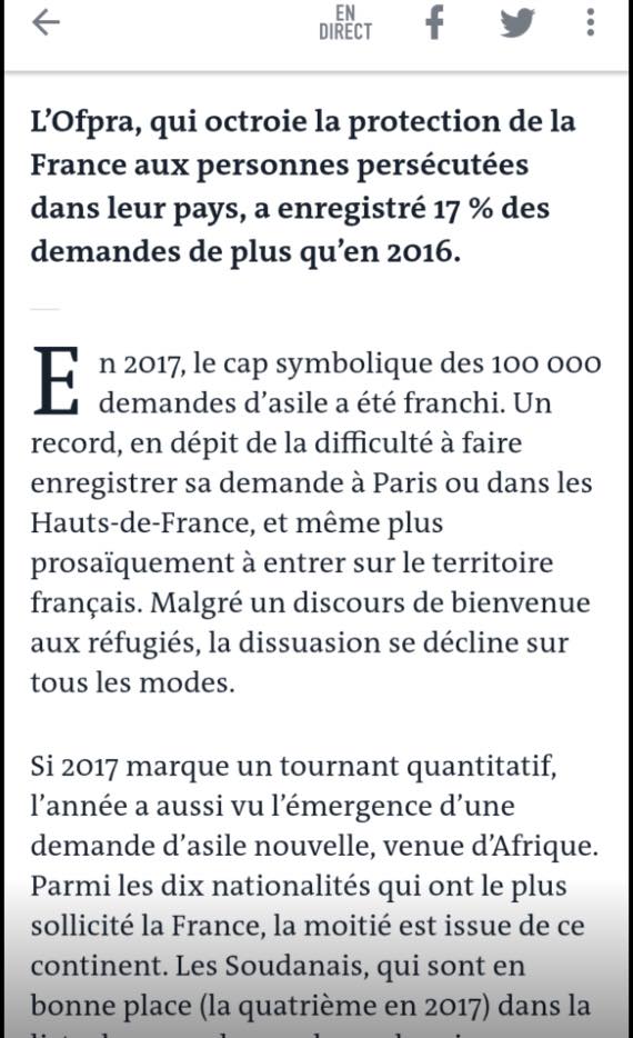 Studioj ne Paris dhe po lexoja lajmet sot ne mengjes. Shikoni sesi e pershkruan e famshmja ‘Le monde’ pasqyren e shteteve azil-kerkues per 2017. Renditemi te paret me 66 000 azil-kerkues! Vetem ne France!