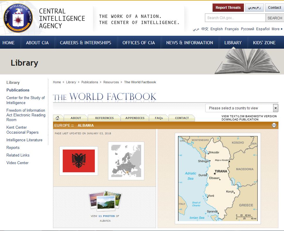 Çdo vit agjencia inteligjente amerikane përditëson të dhënat për shumë shtete të botës dhe së fundmi ka nxjerrë raportin më të ri për vendin tonë. Aty theksi vihet te lufta ndaj korrupsionit, krimi i organizuar dhe te integrimi në Bashkimin Europian. Sipas raportit, Shqipëria duhet që të përmbushë me sukses të gjitha qëllimet e reformës në drejtësi, me qëllim që të hapen dyert e Bashkimit Europian.