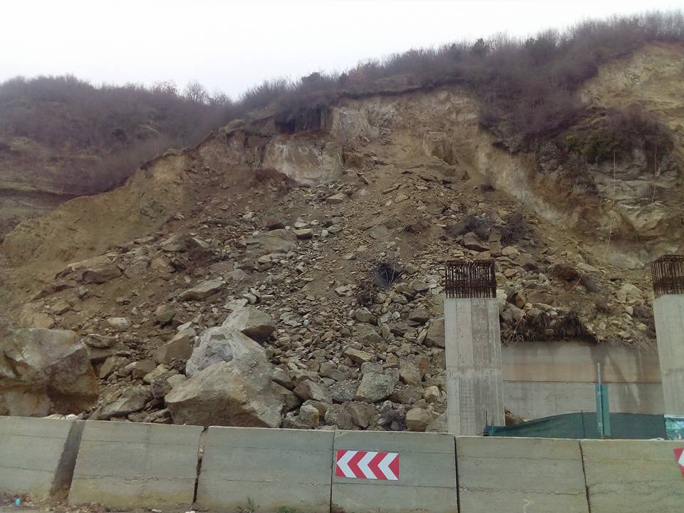 Masivë të mëdhenj gurësh kanë rënë në rrugën në rikonstruksion në hyrje të Pogradecit.