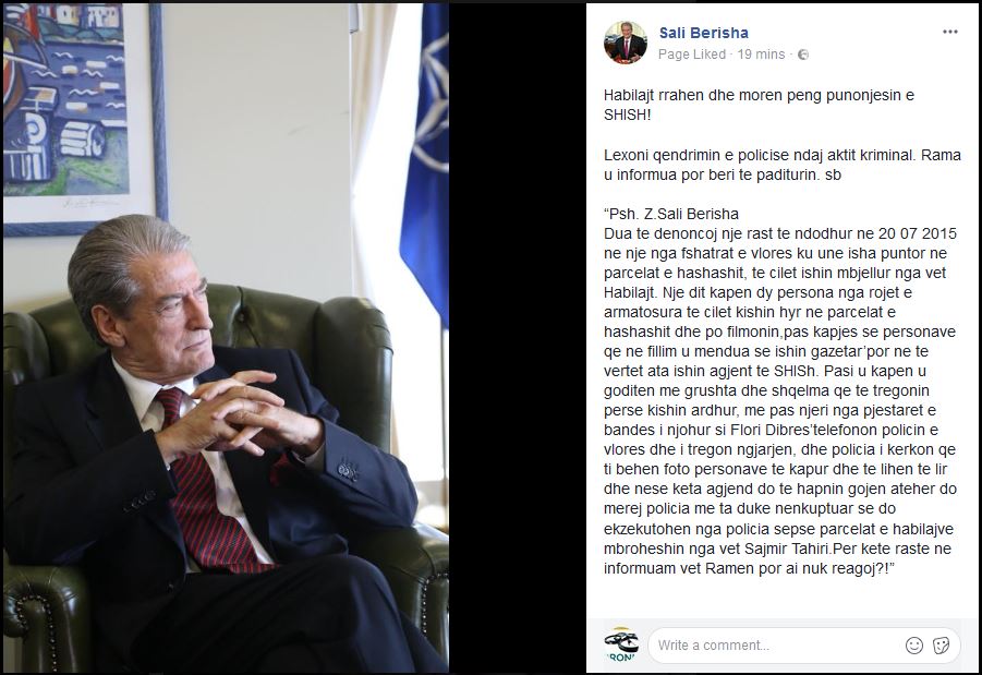 Dy punonjës të SHISH janë marrë peng nga banda që ruante parcelat me drogë të Habilajve. Denoncimin e “qytetarit dixhital” e bën publik ish-kryeministri Sali Berisha, sipas të cilit ngjarja ka ndodhur në 20 korrik të vitit 2015.
