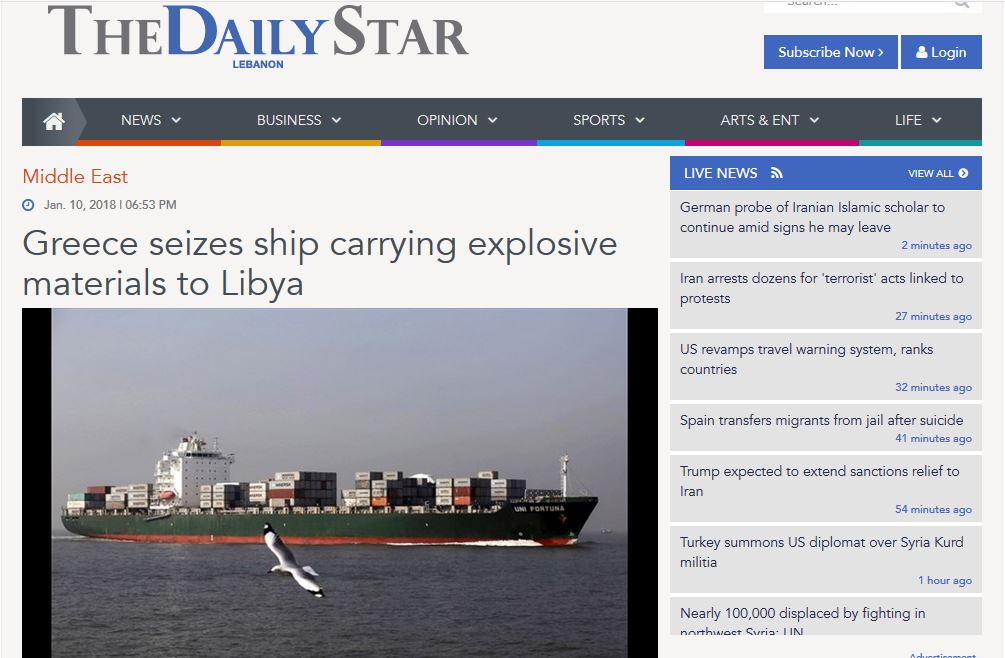 Një anije e ngarkuar me eksploziv u ndalua në Greqi ditën e djeshme, ndërsa janë arrestuar 8 personat që ndodheshin në bord, mes tyre një shqiptar. Mjeti lundrues ndodhet i ankoruar në portin e Iraklios në Kretë dhe destinacioni përfundimtar i saj ishte Libia. Sipas mediave greke, anija po transportonte 29 konteinerë me eksplozivë, detonatorë, nitrat amoniaku dhe përbërës të tjerë që mund të përdoren për ndërtimin e bombave.