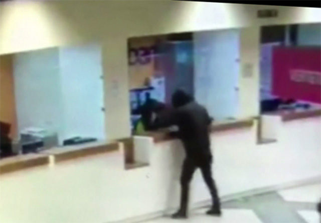 Këto janë pamjet e fiksuara nga kamerat e sigurisë të cilat kanë xhiruar grabitjen e sportelit të një banke të nivelit të dytë në sallën kryesore të godinës së Hipotekës në Tiranë. I maskuar me një kapuç dhe më një pistoletë në dorë, grabitësi kërcënon punonjëset e dy arkave dhe prej andej mbush një qese me para. Fillimisht qytetarët që ndodheshin në sallë nuk e kuptojnë çfarë po ndodhte por pasi grabitësi ka ngritur zërin duke iu drejtuar sportelistëve me fjalët “parat se do t’ju vras”, ata janë larguar menjëherë të frikësuar.