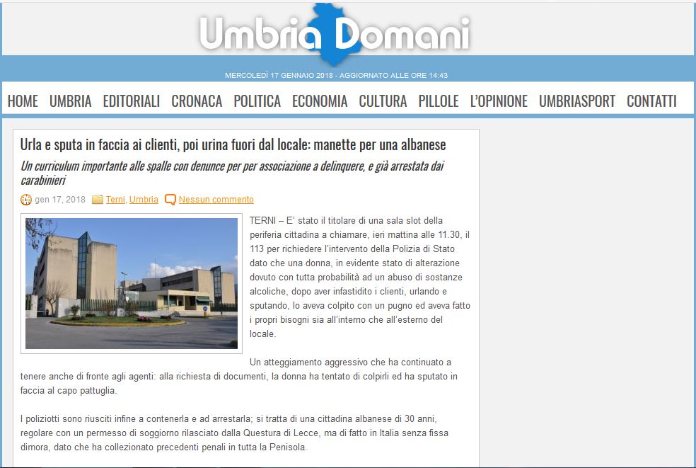 Policia në fund arriti ta arrestojë atë dhe ka çojë në komisariat. Aty u zbulua e shkuara e saj plot me precedentë në gjithë vendin. Shqiptarja ka qenë e arrestuar nga karabinierët e Cagliari për çështje drogë, ka qenë e denoncuar nga Policia në Verona për vjedhje, në Brescia, si dhe për vjedhje, edhe për lëndimet dhe dëmtime të personave, në Sassari për korrupsion.