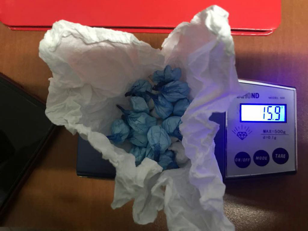 Gjatë kontrollit të automjetit në sedijen e pasme mbrapa pasagjerit të parë, në ndarjen midis sediljes ulëse dhe asaj mbështetëse janë gjetur dhe sekuestruar në cilësinë e provës materiale 15 paketime plastike të mbyllura me djegie, brenda se cilave kishte lëndë të dyshuar narkotike të llojit kokainë, si dhe një facolet brenda së cilës kishte 10 paketime plastike të mbyllura me djegie ku kishte material pluhur  të dyshuar lëndë narkotike të llojit kokainë.