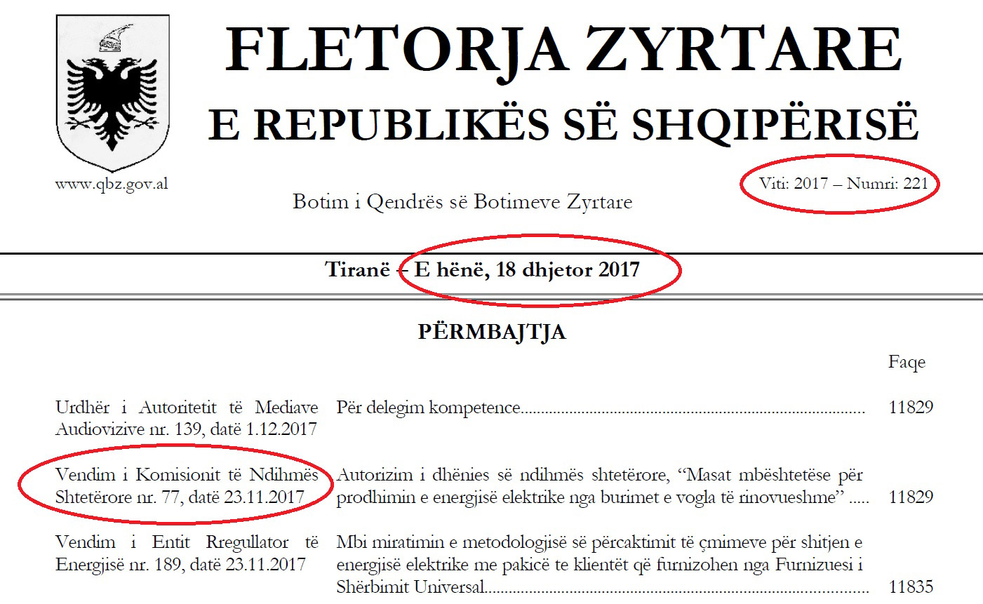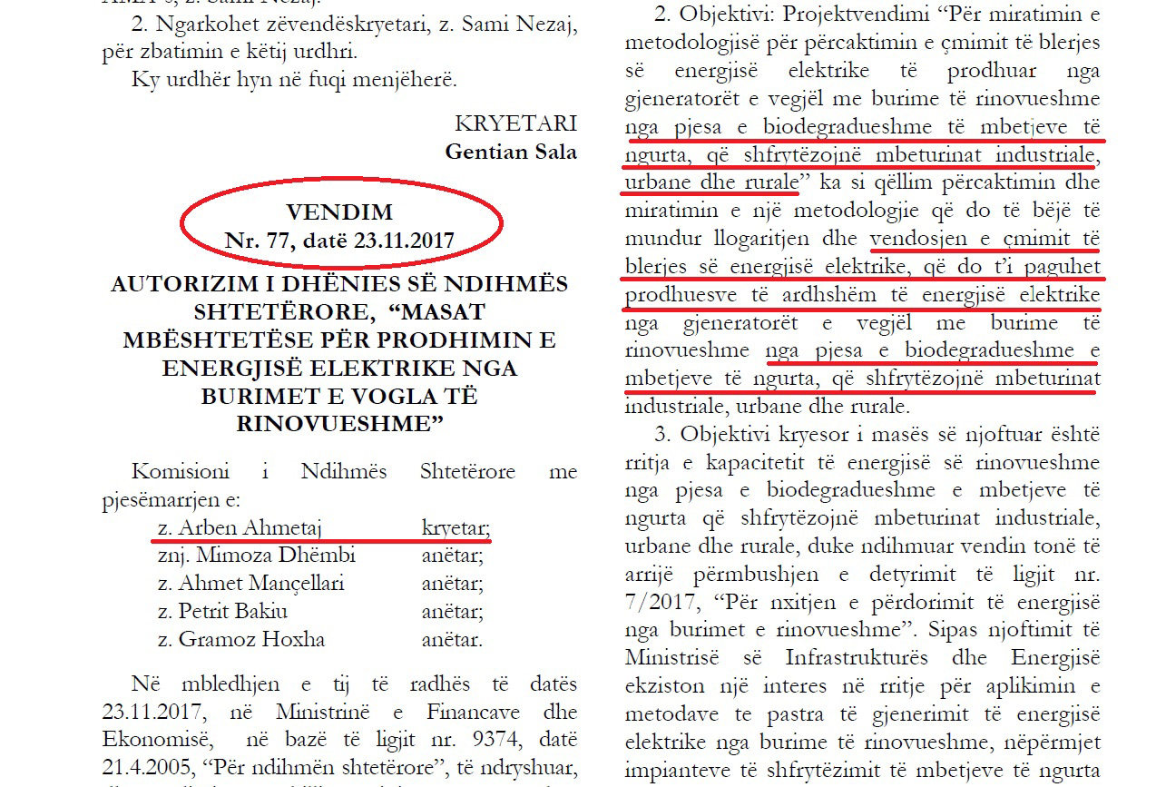 Ja të nderuar shqiptarë Vendimi Nr. 77, datë 23 Nëntor 2017 i Komisionit të Ndihmës Shtetërore, ku thuhet qartë se bizneset që do të gjenerojnë energji nga plehrat do të marrin ndihmë shtetërore për të paktën 15 vjet.