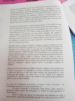 Sipas tij, ndonëse është kërkuar garancia që pala italiane ta niste gjykimin nga fillimi, kjo garanci nuk ka ardhur e në këto kushte, Gjykata nuk mund ta mbajë në burg këtë shtetas.
