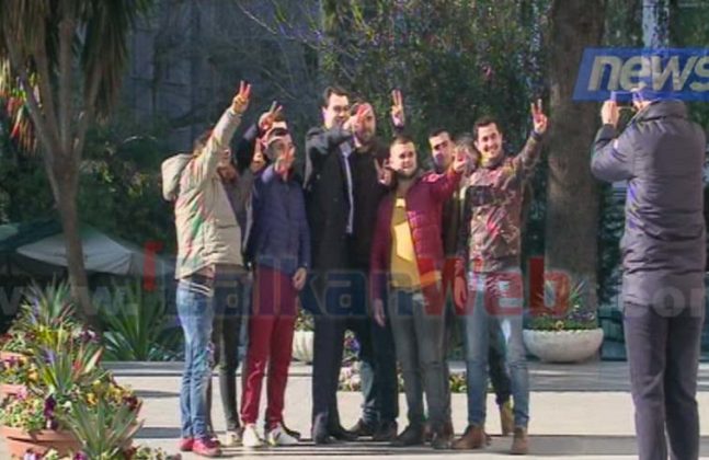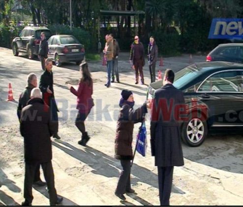 Ai është pritur nga qytetarë që ndodheshin në oborrin para selisë, ndërsa i ka përshëndetur me dy gishta lart dhe më pas personalisht nga afër.