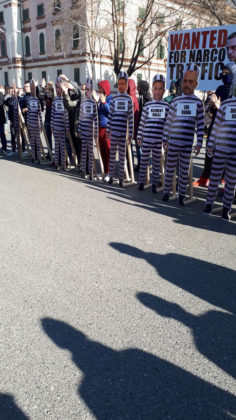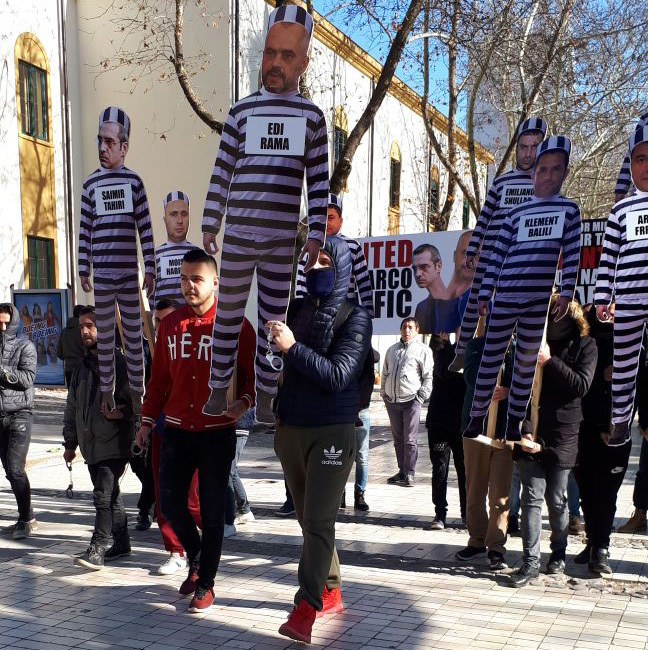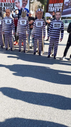 Një tjetër gjetje interesante e protestuesve të opozitës, ka qenë sot, “veshja” me uniformën e burguit, e manekinëve të “kurorës së trafikut” të drogës, ku nuk mungojnë Rama e Tahiri por edhe Habilaj, Balili, Shullazi, Frroku,…etj…, etj. DRONI.al