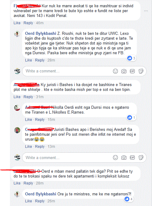 Deputeti i PD-së, Oerd Bylykbashi ka reguar në lidhje me deklaratat e ministres Etilda Gjonaja në Fier duke i sugjeruar asaj të marrë më mirë një avokat për veten. Por ndërkohë që kanë shpërthyer edhe debatetet në facebook ku Bylykbashin e quajnë avokat të bashkisë në kohën e Bashës kryetar dhe i kujtojnë atij një apartament luksoz te diga si dhe një kredi të butë për zyrtarët e lartë.