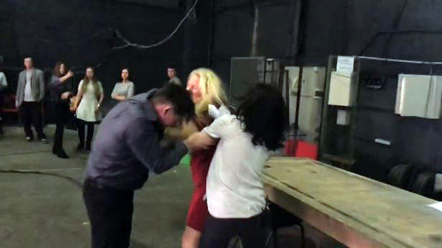 Pamjet e filmuara tregojnë gruan e cila goditi bashkëshortin pak para se të niste transmetimi i emisionit televiziv rus “Çështjet familjare”. Gruaja bjonde, pavarësisht ndërhyrjeve të stafit e bën burrin për spital.