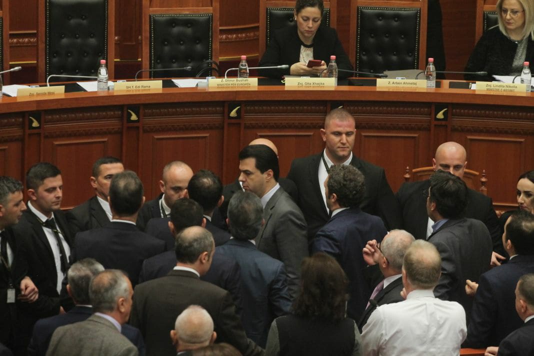 Dalja në foltore e deputetëve të opozitës, bëri që Gramoz Ruci, të ndërpresë për disa minuta seancën e Kuvendit. DRONI.al