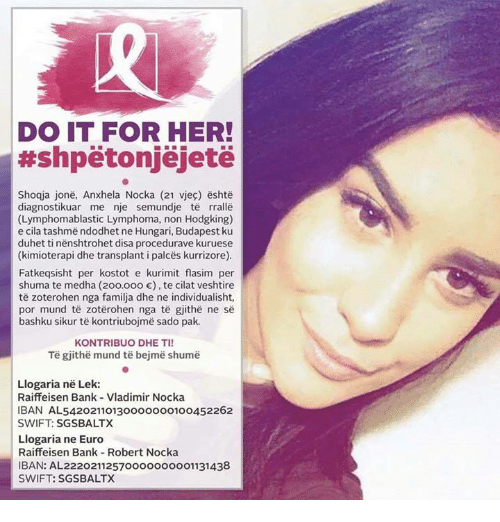 Anxhela Nocka u bë e njohur një vit më parë, kur një solidaritet i jashtëzakonshëm qytetar pasoi në mënyrë të rrufeshme thirrjen që familjarët dhe shokët e saj bënë në rrjetet sociale, gazeta dhe televizione, për mbledhjen e fondeve që do të bënin të mundur kurimin e saj jashtë vendit.