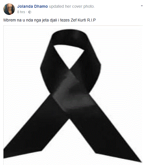 “Mbrem na u nda nga jeta djali i tezes Zef Kurti R.l.P”, shkruan ajo në rrjetet sociale.