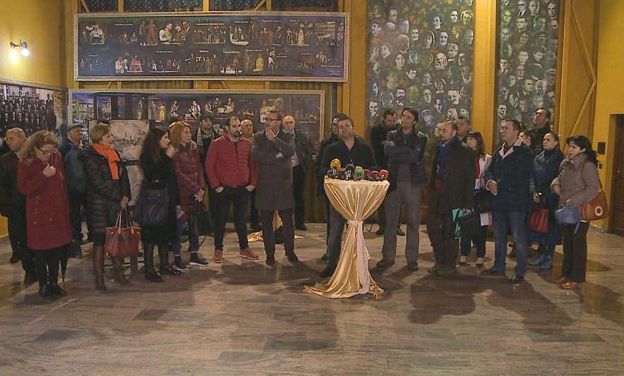 Duke denuar me ashpersine me te madhe kete beteje te verber kunder Teatrit tone kombetar dhe artisteve te trupes se tij, ju bej thirrje qytetareve te mbrojne artistet, eliten artistike te kombit, kerkesat e tyre te drejta nga hakmarrja primitive e nje piktori te deshtuar, i cili per te mbushur xhepat e tij do tani te zhduke Teatrin Kombetar! sb