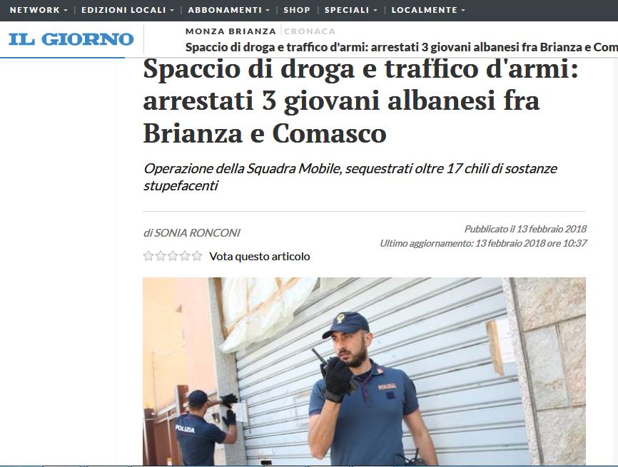 Policia italiane ka vënë në pranga një shqiptar të cilit i janë gjetur mbi 17 kg drogë, kokainë dhe heroinë dhe një arsenal armësh në banesën e tij.