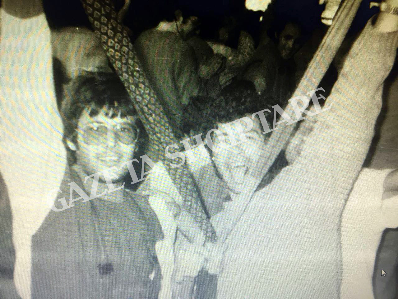 Po është momenti që do dilnim nga greva dhe bashkë me dy shokë të tjerë kemi hequr shallet tona dhe formuam shkronjë V si simbol të fitores.