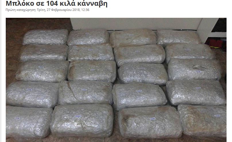 Një shqiptar 26-vjeçar u arrestua sot nga policia greke në Krystallopigi, Florina, pasi ne automjet iu zbulua 104 kg droge.