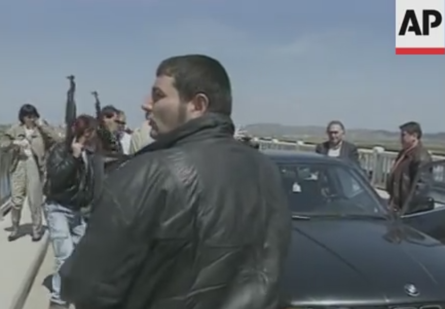 Në pamjet e një video e realizuar nga “Associated Press” shfaqin Zani Çaushit me bandën së tij në ngjarjet e vitit 1997. Në krye te bandës po komunikon oficeri i policisë Ardian Liçaj ( i prangosur sot në Itali për trafik droge) dhe banda e Zani Caushit shikohet se është bllokuar tek ura e Mifolit.