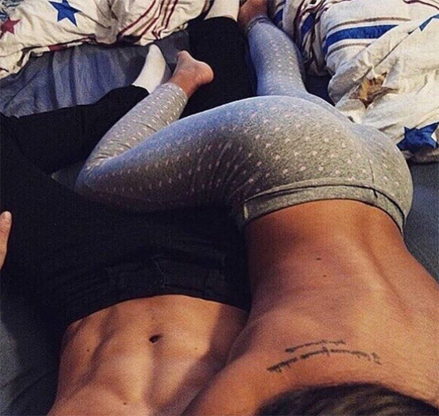 Femra shtrihet në bark me këmbë të hapura dhe gjunjët i ka në skajet e krevatit. Mashkulli vjen nga prapa, ndërsa ajo i mbështjell këmbët rreth tij. Ai e mban të vendosur në kofsha. Kështu forcohen bicepsët dhe pjesa e poshtme e shpinës. Këtë mund ta realizoni edhe në dysheme.
