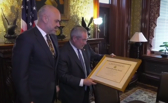 Kryeministri Edi Rama mori sot një cmim për pluralizmin kulturor nga Komisioni për trashëgiminë amerikane në botë. Rama i cili ndodhet këto ditë në SHBA e mori cmimin nga i emëruari nga Presidenti Trump për të drejtuar këtë komision.