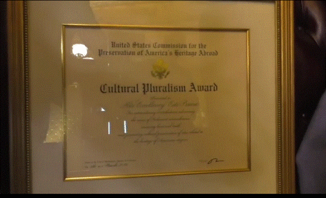 “Një surprizë e posaçme ceremonia e marrjes sot, në Shtëpinë e Bardhë, të ÇMIMIT PËR PLURALIZMIN KULTUROR, dorëzuar nga i emëruari i Presidentit Trump në krye të Komisionit për Mbrojtjen e Trashëgimisë Amerikane në Botë, Paul Packer.