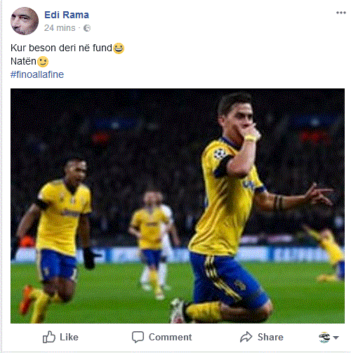 Ne fakt Rama gjysem ore me pare ka psotuar nje mesazh per ndeshjen e fituar nga Juventus.