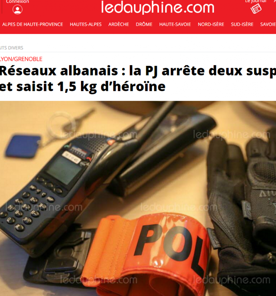 1.5 kg heroinë u sekuestruan, 40 kg përzjerës dhe 30 mijë Euro cash. Arrestimi i shqiptarëve, emrat e të cilëve nuk janë bërë me dije, është pjesë e një hetimi të nisur në Janar nga Prokuroria e Grenoble, kur u arrestuan dy shqiptarë të tjerë. Sipas shtypit francez, bëhet fjalë për një organizatë kriminale të trafikut të dorgës në Francë dhe në Holandë.