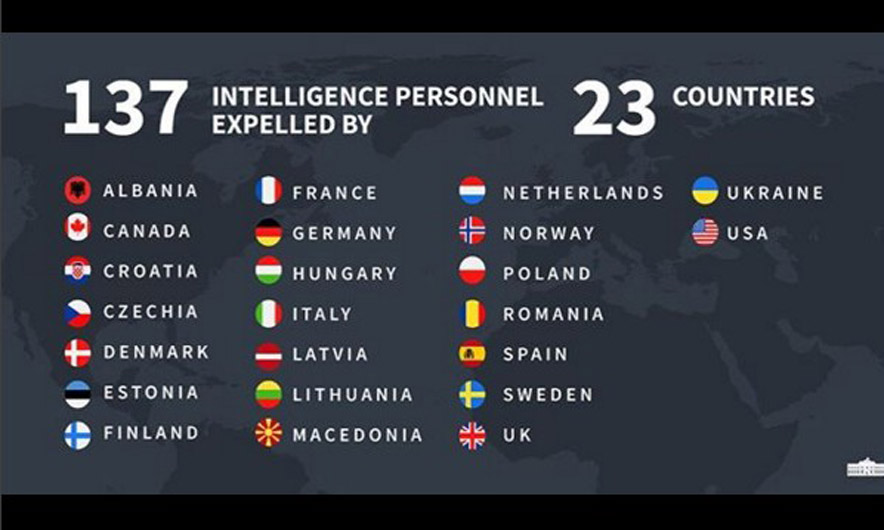 Shtëpia e Bardhë ka bërë sot bilancin e fushatës kundër Rusisë e ndërtuar përmes dëbimit të diplomatëve rusë të dyhsuar se I përkasin spiunazhit të Moskës. Me anë të një fotoje në Instagram, thuhet se janë 23 shtete që I janë bashkëngjitur Uashingtonit duke dëbuar 137 diplomate rusë.