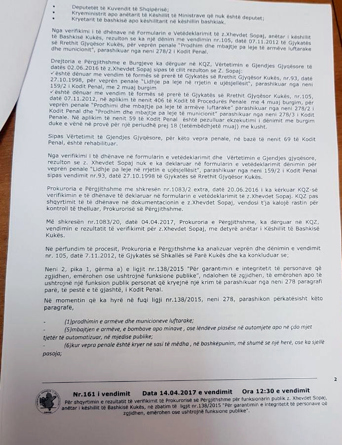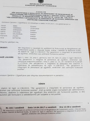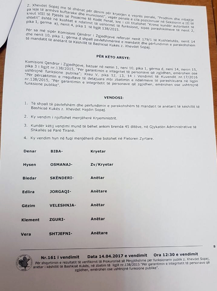 * Bashkëngjitur fotot e vendimit të KQZ-së për ndërprerjen e mandatit të Xhevdet Sopaj