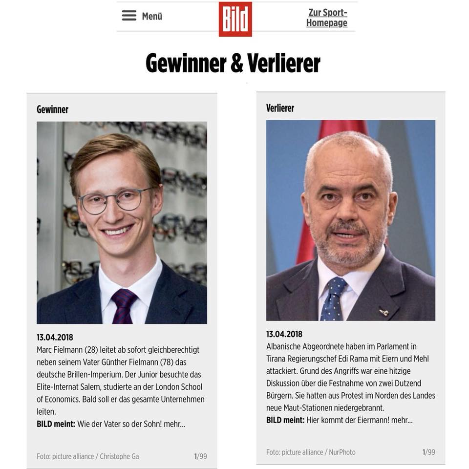 Keshtu, në rubrikën e saj të famshme “Fitues dhe Humbës”, gazeta me e shitur gjermane Bild rendit tek fituesit një prodhues syzesh, Marc Fielmann, ndërsa tek humbësit e javës Edi Ramën.