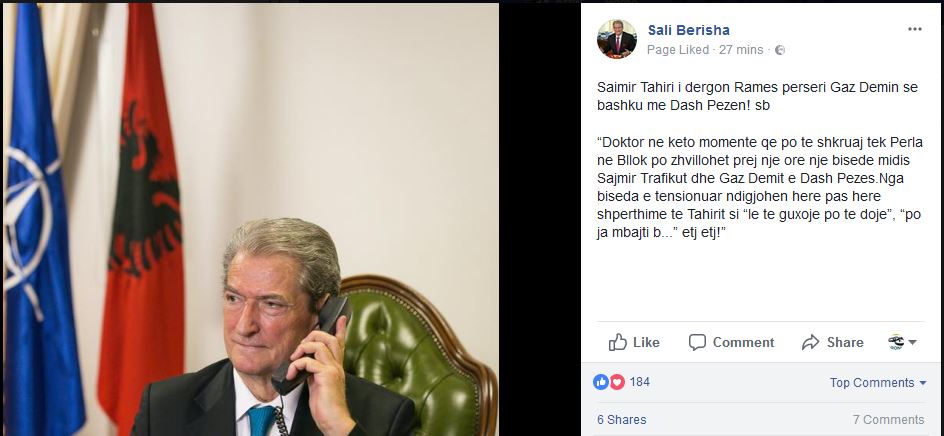 Një fakt të tillë e bën publik ish-kryeministri Sali Berisha, i cili zbulon edhe pjesë nga biseda e tyre e tensionuar, ku ish-ministri duket se kërcënon kryeministrin Edi Rama me fjalët “Po ja mbajti b***, le të guxojë po të dojë”.