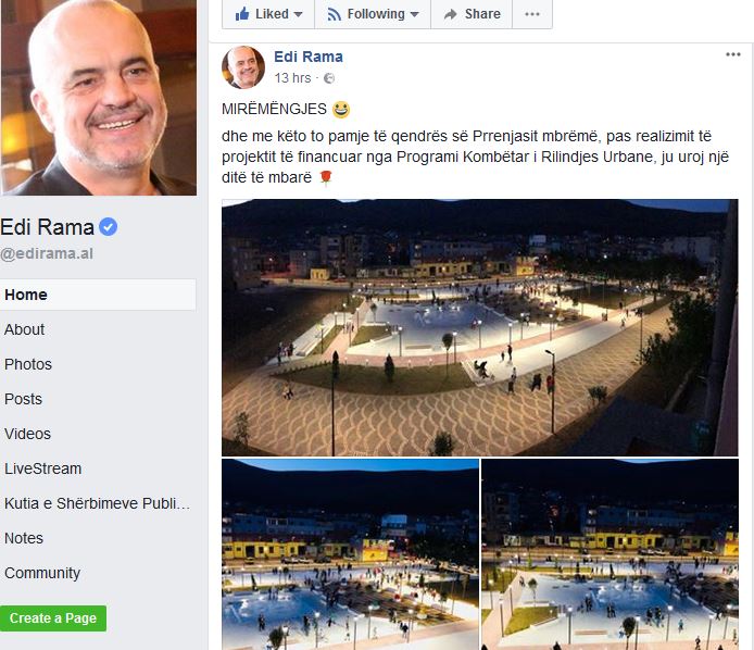 Kryeministri Edi Rama, me një Foto Galeri paraqiste qendrën e Përrenjasit, “vepër madhore” e Rilindjes Urbane.