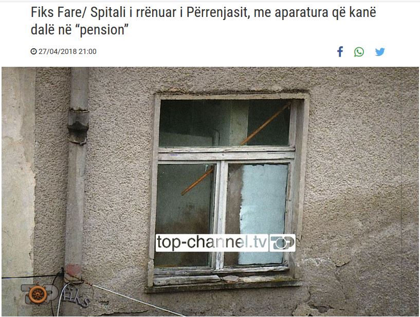 Pas këtyre denoncimeve, Fiksi udhëtoi drejt Spitalit Bashkiak të Përrenjasit. Në këtë spital, kishte aparatura që kishin “dalë” në pension. Aparatura që bënte grafi ishte e vitit 1953, pra plot 65 vjeçare. Spitali, megjithëse tre katësh, ishte i rrënuar. Funksionin vetëm dy kate, ndërsa kati i tretë ishte jashtë funksioni. Për 50 mijë banorë, por edhe për udhëtarët e aksit Librazhd-Pogradec, kishte një urgjencë vetëm me dy dhoma.