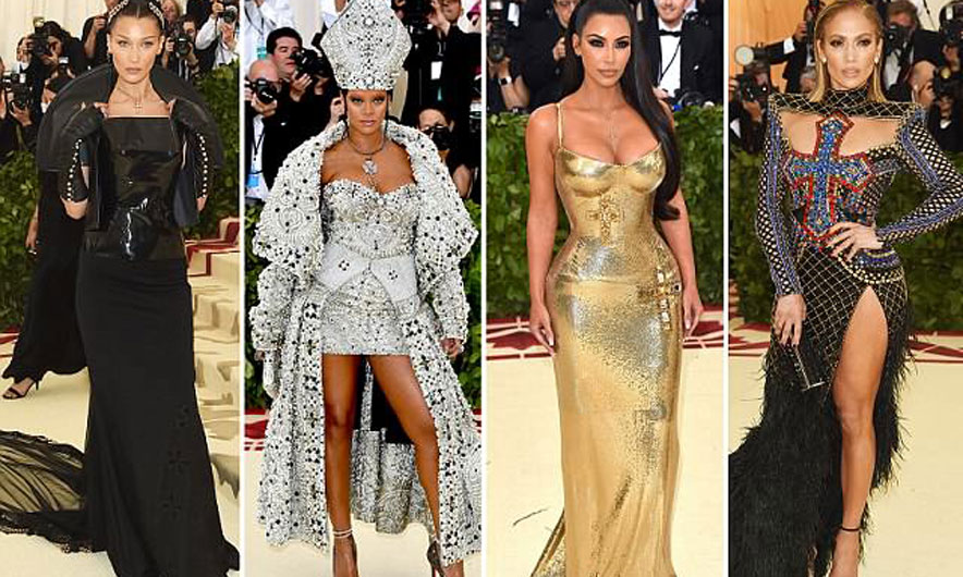 Yjet zbritën në tapetin e kuq, disa me minifund të frymëzuar nga vetë Papa, siç ishte rasti i Rihanës, kostume të kryqëzatave apo rasti i këngëtares Katy Perry, e cila u shfaq me dy krahë të stërmëdha engjëlli.