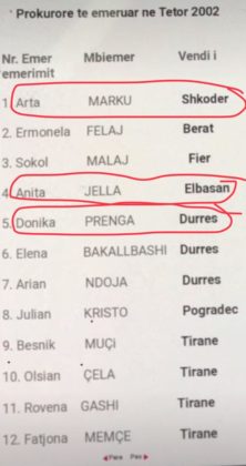 #Po kush erdhi ne vend te mos-besimit, u komandua prokurorja Donika Prela ish-shoqja e klases se kryeprokurores se perkoheshme Arta Marku njeherazi me lidhje nepotike mes tyre! Mes tjerash, Prokurorja Prela eshte po ajo qe mbajti mbi nje muaj dosjen e A.Llalles dhe nuk beri asnje veprim hetimor! Ajo qe ne Prokurorin e Durresit ishte zv/drejtuese ne kohen e A.Llalles dhe e besuara e ish-drejtuesit Te prokurorise se Durresit Agron Gjana, atij qe ambasada e USA ia ndaloi hyrjen ne SHBA! U emerua prokurorja qe i pushoi dosjen djalit te Gramoz Rucit dhe shume “Rucave” tjere ne Durres ne vecanti dosjet e kryetarit Vangjush Dako per shkak te njohjeve te bashkeshortit te saj me cilesin e “ndertuesit” ne Durres e Tirane! Por qe pas nisjes se punes nga ana e komisionereve te Vetingut dhe emerimin e Donika Preles ne nivele drejtuese, kompania e bashkeshortit ka shpall falimentin. Uroj te justifikoi pasurine para komisionereve te Vetingut.