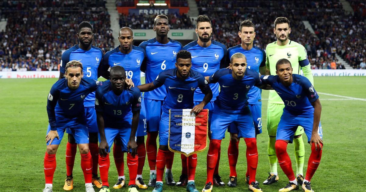 Futbollistët: Ousmane Dembélé [Barcelona], Nabil Fakir [Lyon], Olivier Giroud [Chelsea], Antoine Griezmann [Atletico Madrid], Thomas Lemar [Monaco], Kylian Mbappé [Paris Saint-Germain], Florian Thauvin [Marseille]