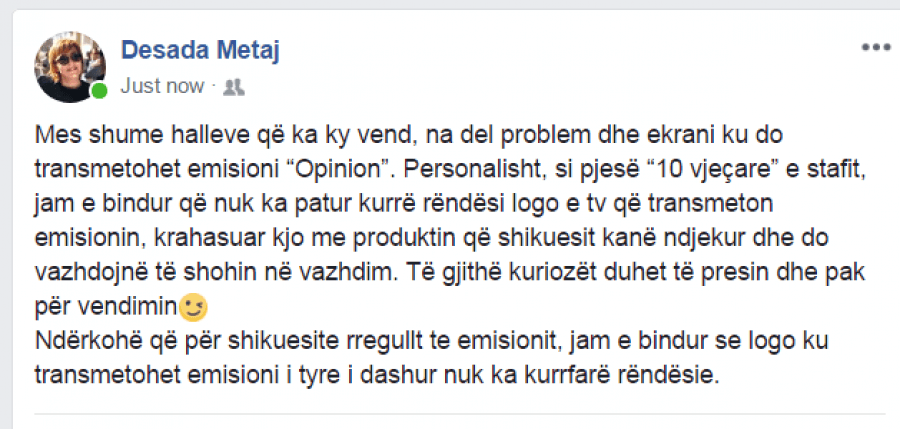 Sipas gazetares Metaj, kuriozët, “duhet të presin edhe pak për vendimin” dhe se logoja ku shfaqet “Opinion”, nuk ka kurrfarë rëndësie.