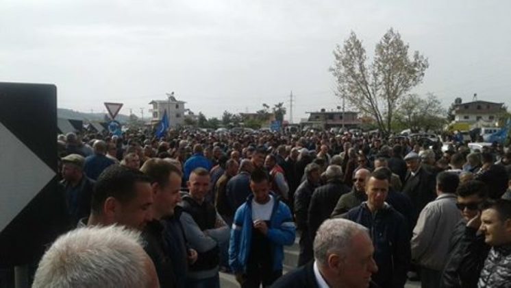 Jashtë ambienteve ku Rama po zhvillon takimin me qytetarë të zonës mbi llogaridhënien publike, të rinjtë janë pozicionuar me parrulla në duar ku shkruhet “Qeveri mafioze”, “Qeveria e drogës”, “Rama hajdut”.