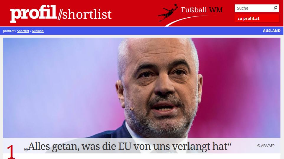 Kryeministri Edi Rama ka dhënë një intervistë për median austriake profil.at, ku ka folur rreth euro-integrimeve të Shqipërisë.