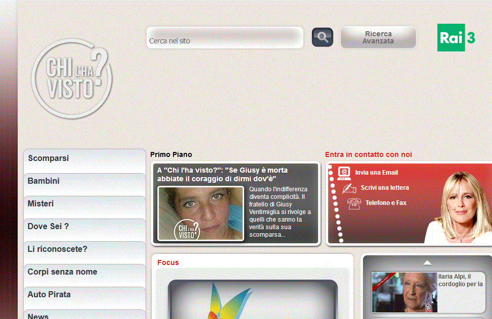 Mediat italiane raportojne për një grua shqiptare të zhdukur të zhdukur prej ditësh. Rasti i saj u bë publik në emisionin “Chi l’ha visto?” i transmetuar në Rai3. Gruaja shqiptare me banim në komunën italiane “Marina di Massa” është raportuar nga familjarët e zhdukur se është zhdukur që prej 11 qershorit 2018.