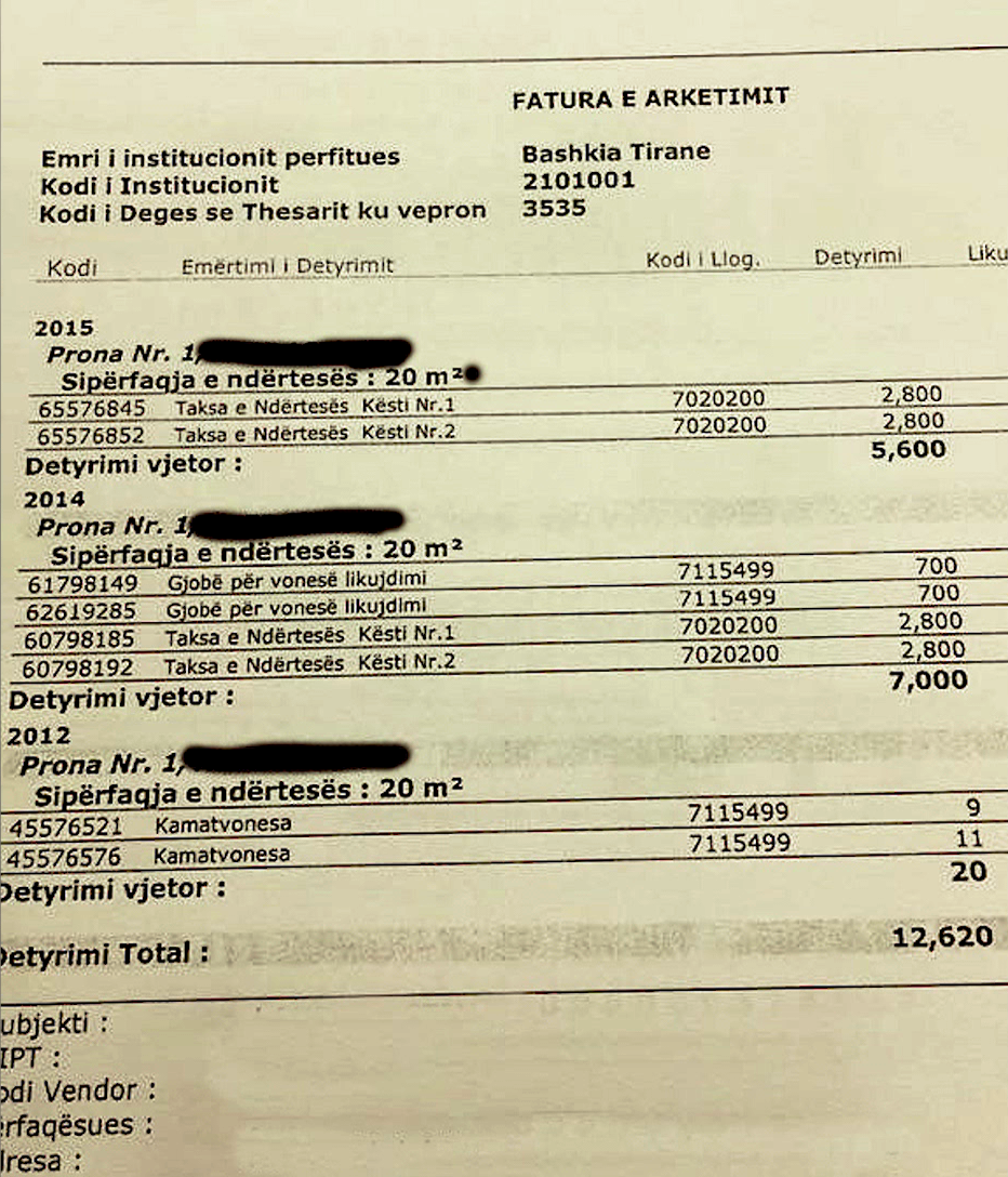 Siç edhe duket qartë, një biznes për një hapësirë prej 20 metra katrorë pagesa i është dyfishuar. Në vitin 2015 paguante prej 56 mijë lekë, ndërsa sot, për të njëjtën godinë, paguan 128 mijë lekë.